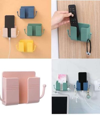 phone charging bracket wall mounted holder Multi-function Wall Mounted Organizer Holder, Storage Box, Remote Control, Mobile Phone Charging Hold Material: ABS Size: 100*95*30mm Application: Used to place mobile phones, remote controllers, etc., suitable for most mobile phones on the market, the screen is universal below 6.6 inches Color: Yellow, Green, Blue, Pink
